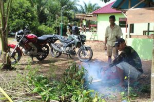 Pak Saprol warga desa yang mengalami kesulitan untuk membuang tungul atau sisa kayu terbantu dengan kehadiran Koptu Hasanudin, Dengan peralatan yang dimilki serta semangat pak saprol bersama Koptu hasanudin pun berhasil menyingkirkan serta membakar sisa kayu tersebut