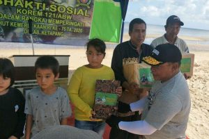 Ketapang – Gowes Tour De Kendawangan Komandan Korem 121/Abw, Brigjen TNI Ronny,S.A.P, dalam rangka memperingati Hari Proklamasi Kemerdekaan RI Ke-75 tahun 2020 juga mengagendakan kegiatan Bakti Sosial yang dilaksanakan di Desa Pagar Mentimun, Kecamatan Matan Hilir Selatan Kab.Ketapang, Jum’at (24/7/20).