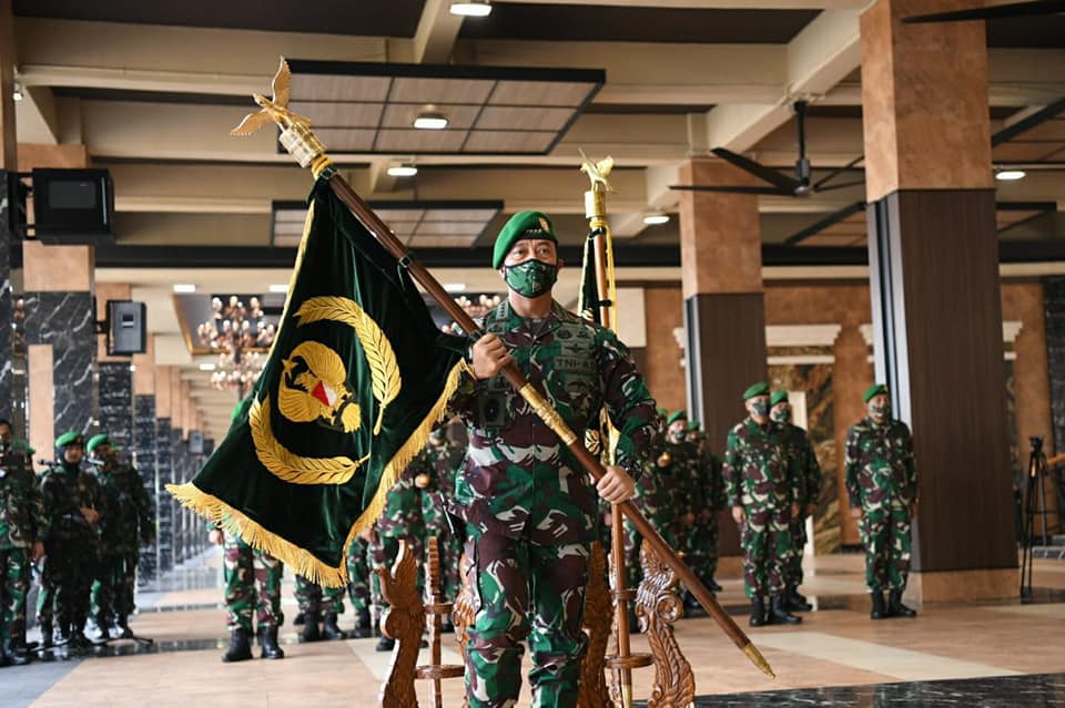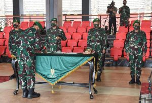 JAKARTA – Kepala Staf Angkatan Darat (Kasad) Jenderal TNI Andika Perkasa memimpin Serah Terima Jabatan (Sertijab) Pangdam XVI/Pattimura dan Kapushubad, sekaligus menerima laporan korps kenaikan pangkat 20 orang Perwira Tinggi (Pati) TNI AD, bertempat di Lantai Dasar Gedung E Markas Besar Angkatan Darat (Mabesad), Jakarta, Jum’at (24/7-2020)