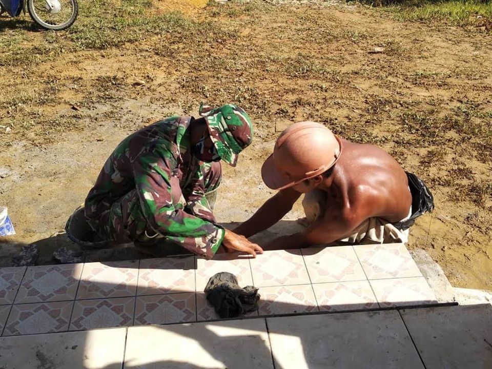 Satgas TMMD Kodim 1202/Skw Bantu Warga Pasang Keramik.