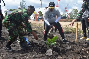 Ketapang – Gowes Tour De Kendawangan, Komandan Korem 121/Abw, Brigjen TNI Ronny,S.A.P, dalam rangka memperingati Hari Proklamasi Kemerdekaan RI Ke-75 tahun 2020 juga mengagendakan kegiatan “Penanaman Pohon Kopi” dalam rangka percepatan Desa Mandiri Menuju Langit Biru Di Bumi Khatulistiwa, yang dilaksanakan di Desa Pagar Mentimun, Kecamatan Matan Hilir Selatan Kab.Ketapang, Jum’at (24/7/20).