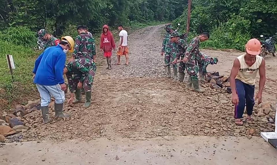 Kehadiran TNI, menjadi nilai tersendiri bagi masyarakat, dengan hadirnya TNI di Desanya bukan hanya dalam hal pembangunan saja namun dalam kegiatan apapun menanmkan jiwa sosial dan bergotong royong.(Pendim 1202/Skw)