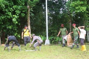 Karya bhakti tersebut dipimpin oleh Perwira Topografi, Lettu Ctp Rahmat bersama 14 anggota, warga masyarakat, karang taruna dan Bhabinkamtibmas Polsek Jagoi Babang.