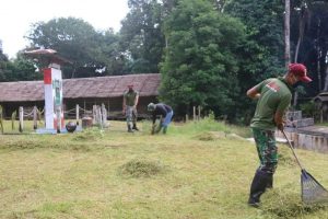 Lestarikan Cagar Budaya di Perbatasan, Satgas 641 Laksanakan Karya Bhakti