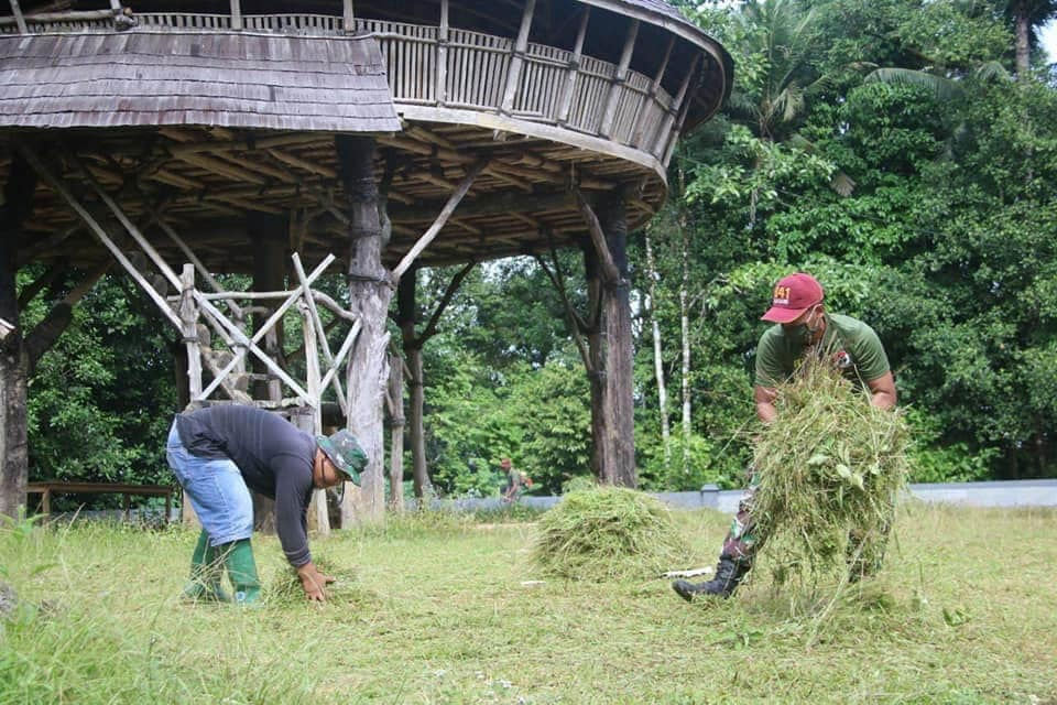 Bengkayang, Sabtu (25/7/20) – Satgas Pamtas Yonif R-641/Bru bersama masyarakat melaksanakan karya bhakti pembersihan cagar budaya suku Dayak Bidayuh di kampung adat Bung Kapuak pada hari Jum’at kemarin, yang berlokasi di Kecamatan Jagoi Babang, Kabupaten Bengkayang, Kalimantan Barat. Kegiatan tersebut guna menjaga kelestarian dan keindahannya.