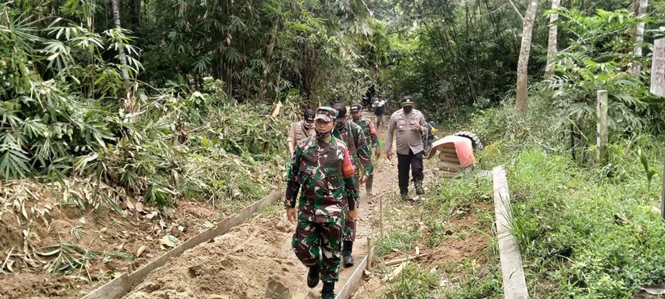 Ketapang, Senin (27/7/20) – Kepala Penerangan Kodam (Kapendam) XII/Tpr, Kolonel Inf Aulia Fahmi Dalimunthe, S.Sos., melaksanakan peninjauan pelaksanaan Satgas TMMD Reguler ke-108 Kodim 1203/Ketapang, Desa Beringin Rayo Kec. Tumbang Titi, Kabupaten Ketapang