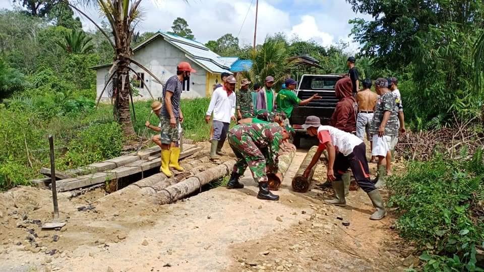 Danramil 1201-08 Mandor Kapten Inf Bambang Rusianto katakan, bahwa TNI dan Warga melakukan perbaikan jembatan secara gotong royong dan dana yang digunakan secara swadaya masyarakat.