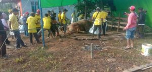 Mempawah – Pengurus Masjid Darul Jannah melaksanakan prosesi pemotongan sapi kurban bantuan Presiden Joko Widodo seberat 1,1 ton dilaksanakan dengan lancar di halaman Masjid Darul Jannah, Parit Ambo’ Pinang, Desa Peniti Dalam I, Kecamatan Segedong, Sabtu (01/08/2020).