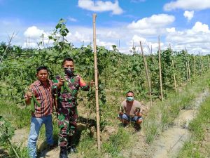 Tebas – Babinsa Koramil 03/Tebas Praka Zainudin melakukan Komunikasi Sosial bersama warga binaannya dalam rangka menciptakan hasil pertanian khususnya sayuran di Desa Makrampai Kec Tebas Kab. Sambas.
