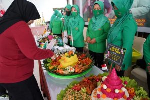Lomba menghias tumpeng pesertanya dari Persit Denma Korem, anggota dari Yonif 642/Kps dan anggota Persit Balak Aju Korem 121/Abw.