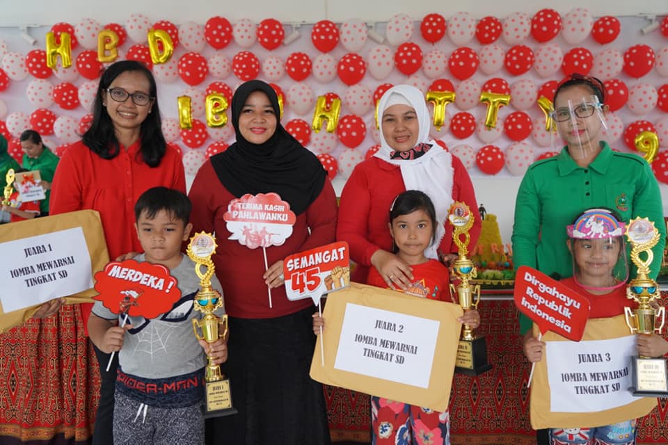 diantaranya makan kerupuk, balap karung dan mewarnai. Untuk ibu Persit lomba menghias tumpeng.