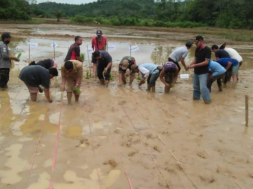 Bertempat di Dusun Dangku Desa Sosok Kec. Tayan hulu kab. Sanggau Plh Danramil 11/Sosok Peltu Lewi melaksanakan penanaman padi perdana di lahan cetak sawah baru seluas 2 Ha.bersama pok tani sinar baru dan Korkopincam.