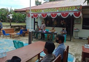 SEKADAU – Danramil 18/Nanga Mahap yang diwakili Babinsa Nanga Mahap Serda Prianus Madi menghadiri rapat sosialisasi membahas tentang Pembukaan Areal Lahan Pertanian Berbasis Kearifan Lokal bertempat di Polsek Nanga Mahap Kec. Sekadau Hulu Kab. Sekadau.