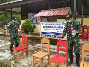 Kapuas Hulu – Untuk memupuk dan menunjukan rasa nasionalisme akan cinta bangsa dan tanah air dalam suatu Negara Kesatuan Republik Indonesia khususnya yang ada di wilayah perbatasan RI-MLY, Satgas Pamtas Yonif 133/YS memberikan 2 papan tulis baru dan mengecat 36 kursi dan juga 18 meja yang warnanya sudah usang di Sekolah Dasar Negeri 04 Desa Merakai Panjang, Kecamatan Puring Kencana, Kabupaten Kapuas Hulu.