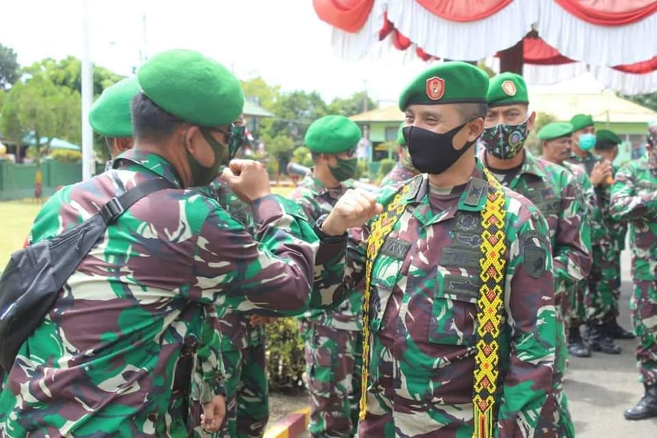Ketapang, Kamis (6/8/2020) – Dengan penuh rasa haru Keluarga Besar Kodim 1203/Ktp saat acara pelepasan dan pengantaran Letkol Kav Jami’an, S.I.P selaku Pejabat Dandim lama dan Ketua Persit Kartika Chandra Kirana Cabang XLVII Kodim 1203 Koorcab Rem 121 PD XII/Tanjungpura Ny. Santi Jami’an menuju pintu gerbang Makodim 1203/Ktp dari ruang aula ke Jalan S.Parman Kec.Delta pawan Kab.Ketapang.