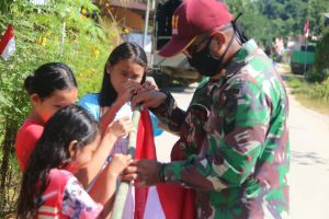Mendekati hari kemerdekaan RI ke-75, Satgas Yonif Raider terus mengajak masyarakat perbatasan untuk menghiasi lingkungan disekitar rumahnya dengan bendera dan hiasan bernuansa merah putih.