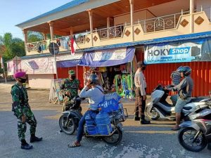 Patroli Gabungan TNI-Polri Pasar Tradisional Mempawah Sebagai Kegiatan Rutinitas Covid 19. sosialisasi disiplin melaksanakan protokol kesehatan di semua bidang untuk kondisi New normal