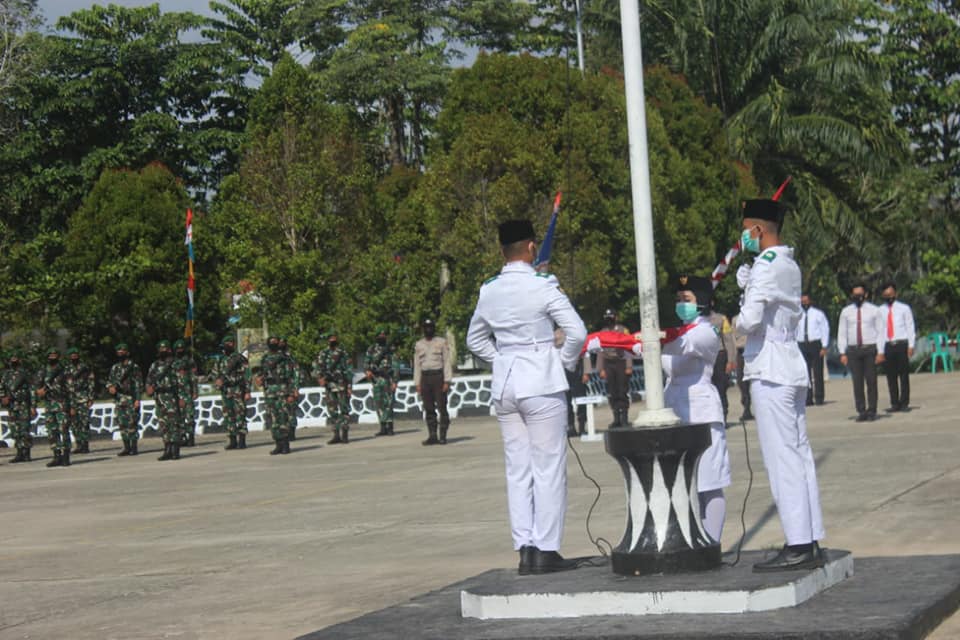 Berbeda dari tahun-tahun sebelumnya, kegiatan upacara bendera yang dipusatkan di halaman Kantor Camat Badau ini dilaksanakan dengan penerapan Protokol Kesehatan secara ketat, termasuk membatasi jumlah peserta upacara.