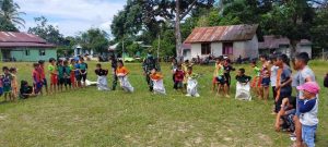 Puring Kencana – Untuk memeriahkan peringatan HUT ke-75 Kemerdekaan RI di Tapal Batas RI-Malaysia di wilayah Kalimantan Barat, personel Pos Langau 1 Satgas Yonif 133/YS menggandeng warga untuk menggelar lomba pesta rakyat.