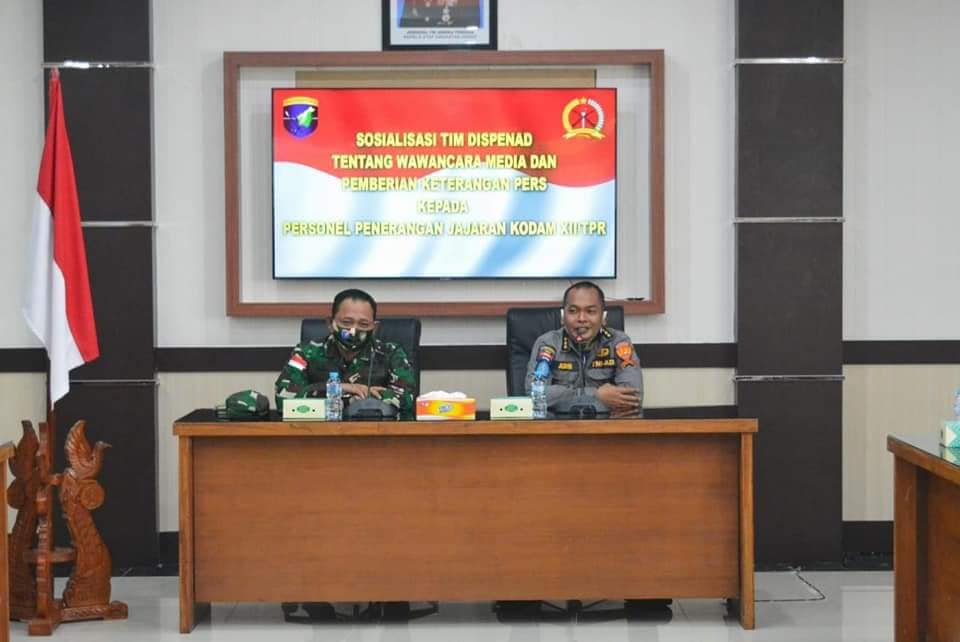 “Kedatangan kami selain sebagai asistensi penerangan, jadi kami juga sekalian sosialisasi tentang wawancara media dan pemberian keterangan pers berdasarkan Peraturan Panglima TNI nomor 22 tahun 2020,” ujarnya.