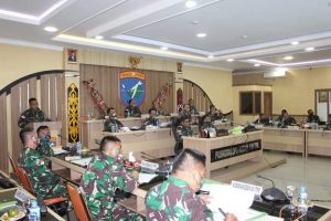 Kubu Raya, Rabu (26/8/20) – Panglima Kodam XII/Tanjungpura, Mayjen TNI Muhammad Nur Rahmad memimpin Rapat Evaluasi Pelaksanan Operasi Pengamanan Perbatasan Koopsdam XII/Tpr. Rapat evaluasi dilaksanakan secara virtual di Ruang Rapat Puskodalopsdam XII/Tpr.