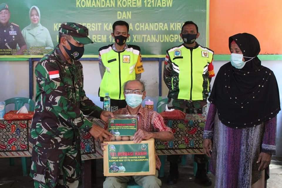 Danrem 121/Abw yang di wakili Danramil 03/Sry Kapten Inf Gatot menyampaikan Kegiatan ini juga melibatkan para Babinsa dan para Bhabinkmtibmas untuk menyalurkan Bakti Sosial ini kepada masyarakat yang membutuhkan, selama kegiatan Pandemi Covid -19 ini masih melanda, untuk itu kami ingin membantu mengurangi beban masyarakat, Bantuan ini tentu tidaklah seberapa nilainya, namun yang terpenting ini sebagai wujud kepedulian kami kepada warga Lemukutan”. ucap nya.