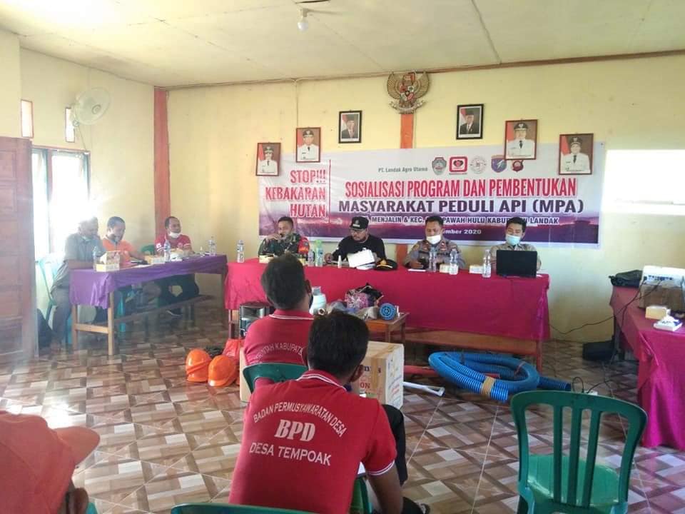 Landak – Pencegahan kebakaran hutan terus di lakukan oleh Koramil jajaran Kodim 1201/Mph , Maka dari itu Koramil Menjalin, Kades Temponak dan PT. Landak Agro Utama (PT. LAU), bekerjasama dengan warga masyarakat Menjalin dalam Pembentukan Masyarakat Pemadam Api (MPA) di wilayah Desa Temponak Kecamatan Menjalin yang berdekatan dengan perkebunan PT. LAU.