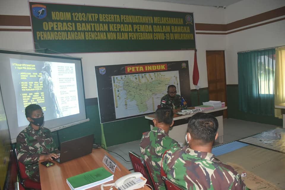 Antara lain mengatakan, pelaksanaan latihan Posko I Kodim 1203/Ktp Tahun 2020 ini bertujuan memelihara dan meningkatkan kemampuan prosedur hubungan kerja komandan dan staf dalam merencanakan, mempersiapkan dan melaksanakan operasi khususnya pelaksanaan komando pengendalian operasi latihan, serta membantu pemerintah Daerah Khususnya di Kabupaten Ketapang dalam penanganan wabah Covid-19.