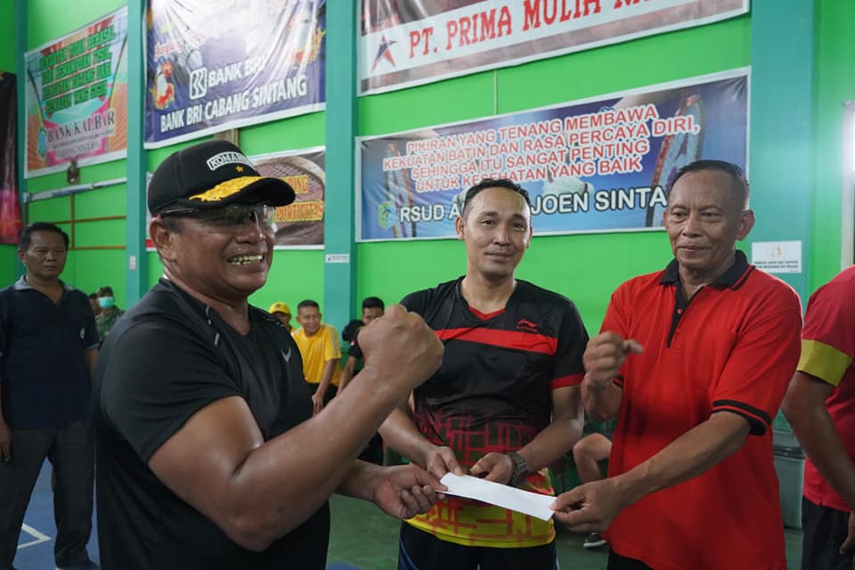 Danrem 121/Abw Brigjen TNI Ronny, S.A.P bersama para Prajurit Korem 121/Abw, mengikuti perlombaan olahraga badminton yang dilaksanakan di GOR Ahmad Yani jln Stadion Sintang, Jum’at, 25/9/2020.