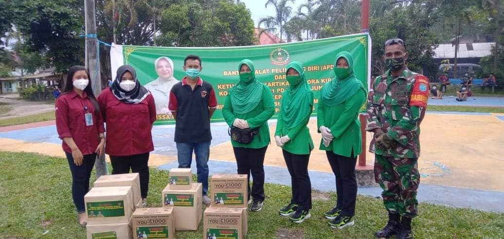 Pemberian APD tersebut saat penyerahan diwakili oleh ketua Persit KCK Cabang 49 Dim Sintang Ny. Retno yang didampingi pengurus Persit Kodim, serta dari Dinas kesehatan Sintang ibu Maria Krisadiana dan ibu Arini.