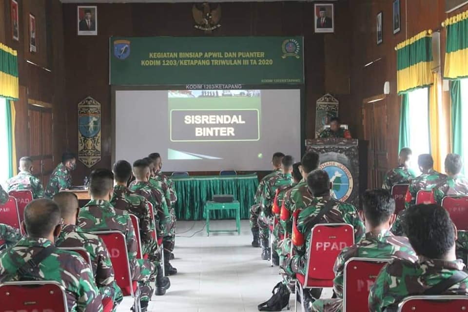 Kegiatan yang diikuti oleh para Danramil dan Babinsa jajaran Kodim 1203/Ktp ini, diberikan pembekalan materi teritorial yang meliputi Sikap Teritorial, Sisrendal binter, Ketatalaksanaan binter, Lima kemampuan teritorial dan Pengetahuan covid-19,” tutur Pasi Ter Kodim 1203/Ktp Kapten Inf Yulianto.