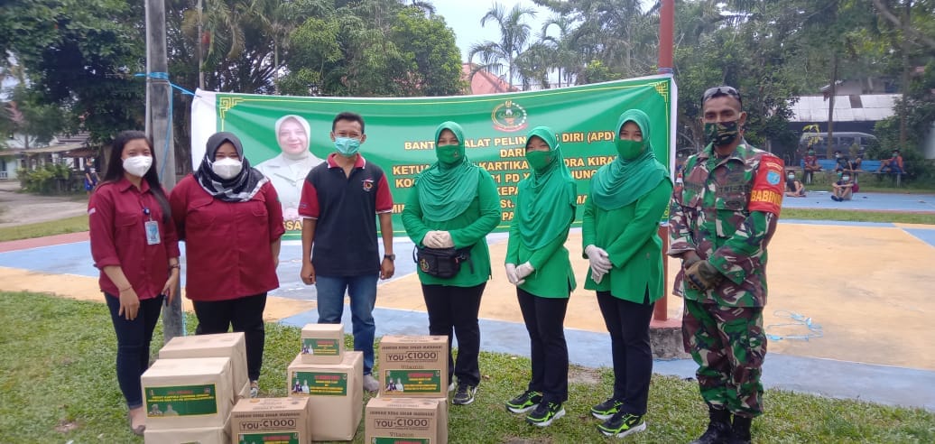 Pemberian APD tersebut saat penyerahan diwakili oleh ketua Persit KCK Cabang 49 Dim Sintang Ny. Retno yang didampingi pengurus Persit Kodim, serta dari Dinas kesehatan Sintang ibu Maria Krisadiana dan ibu Arini.