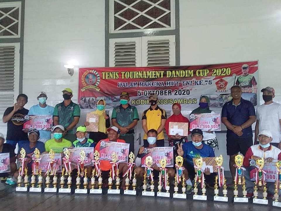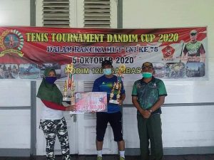 Sambas – Kejuaraan Tenis Lapangan memperebutkan piala Dandim Cup TA 2020 yang diselenggarakan oleh Kodim sambas bekerjasama dengan Pelti Kab. Sambas resmi ditutup, Minggu(4/10/2020)
