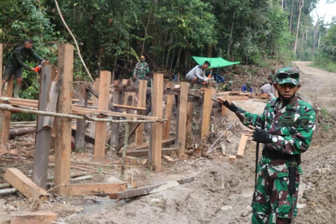 Sintang – Dansatgas meninjau langsaung kelapangan proses penbangunan jembatan sasaran 2 pada Rabu (07/10/2020).