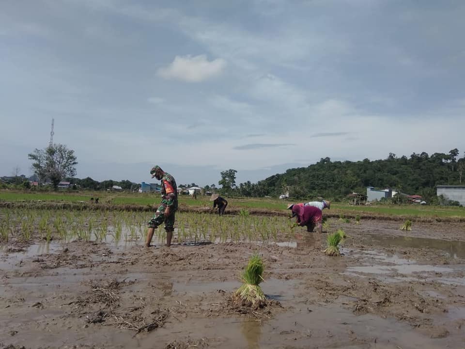 Kayong utara – Kondisi pandemi Covid 19 tidak menyurutkan semangat Bintara Pembina Desa (Babinsa) di jajaran Kodim 1203/Ktp, Salah satunya Serda Rizuani Babinsa Koramil 1203-02/Sukada, Kali ini ia membantu petani menanam padi di Dusun Selimau kecamatan Sukadana Kabupaten Kayong Utara,Kamis (8/10/20).