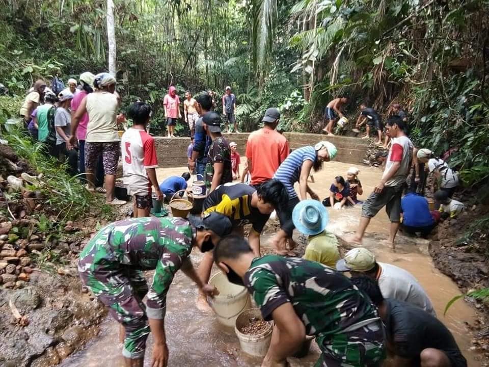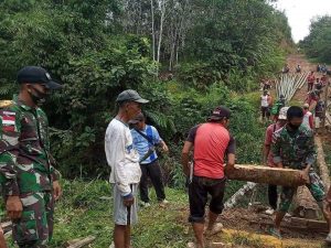 Sinergi TNI dan Warga dalam Gotong dalam rangka menyambut kegiatan Gawai Anak Padi dusun Panga, Desa Semangit, Kecamatan Entikong, Sanggau- Sabtu 10/10/2020.
