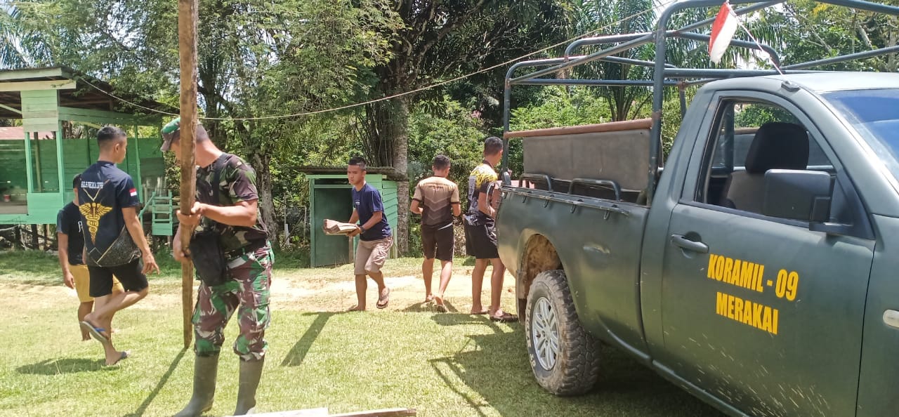 SINTANG – Anggota Satuan Tugas (Satgas) TNI Manunggal Membangun Desa (TMMD) Reguler 109 Kodim 1205 Sintang bersama warga Desa Tirta Karya Kecamatan Ketungau Tengah kembali melaksakanan kegiatan gotong-royong di Merakai, Minggu (11/10/2020).