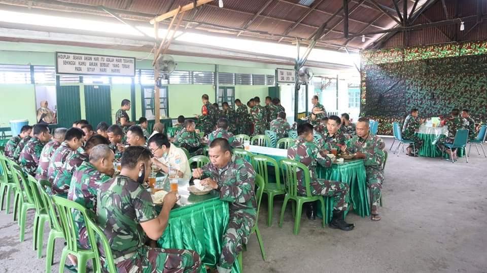 Berbaur dengan anggotanya Dandim 1201 duduk bersama untuk makan sekaligus Program Jum’at Berkah, kegiatan ini dilaksanakan secara sederhana di Aula Makodim 1201/Mph, makan bersama itu di iringi gelak tawa anggota kodim.