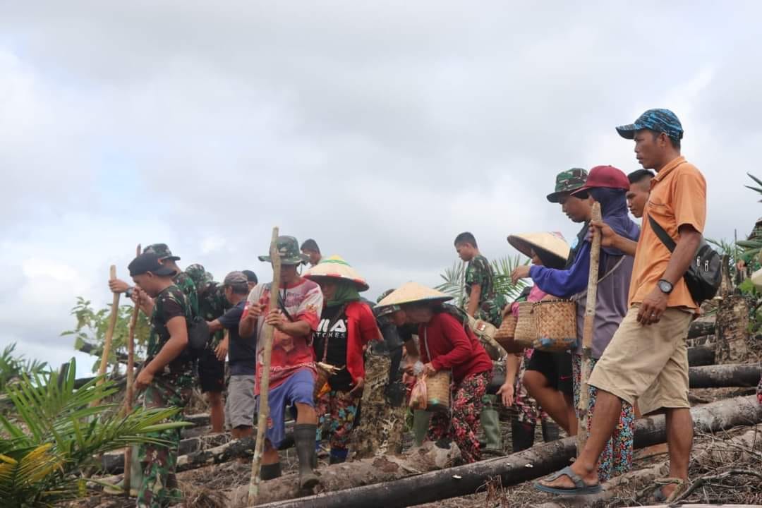 “Kegiatan yang dilakukan bersama warga dalam rangka mendukung program Swasembada pangan dari pemerintah,di lahan masyarakat sekitar sasaran TMMD 109 Sintang,” jelas Prada Supriyadi. Selasa ,(13/10/2020)