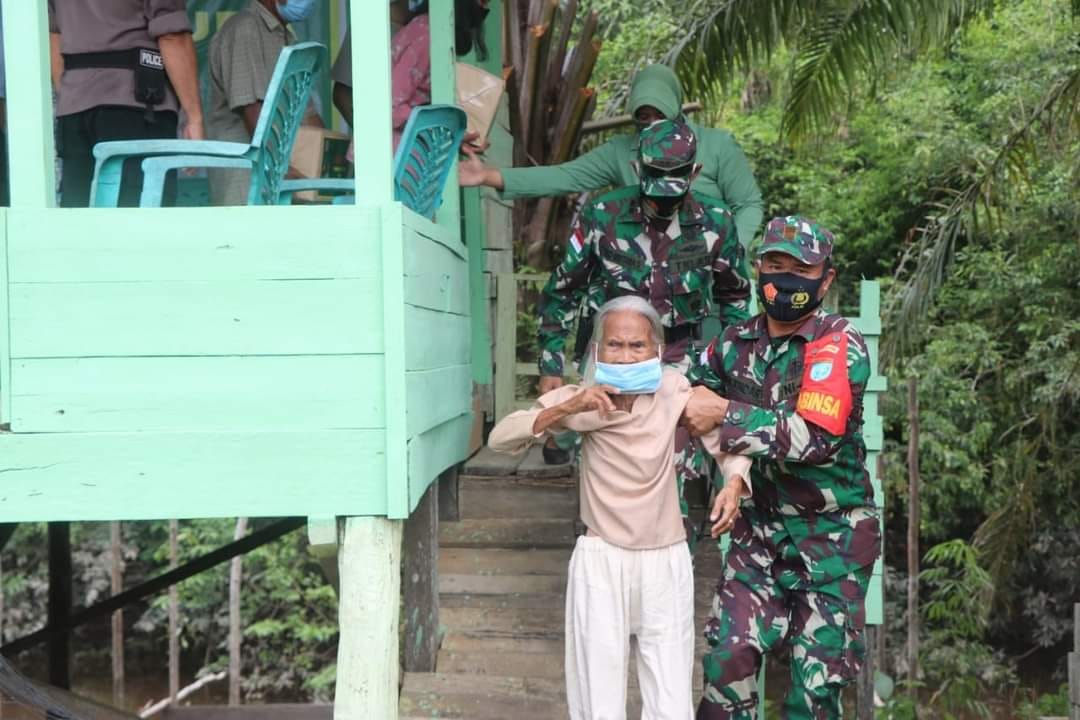 “Ibu Apung ini sudah tidak mampu untuk beraktifitas seperti orang normal karna termakan usia, oleh karna itu demi mendapatkan kesejahteraannya, saya berinisiatif membantunya untuk naik dan turun anak tangga untuk mengambil sembako bagiannya”, ungkal Serda Iskandar.