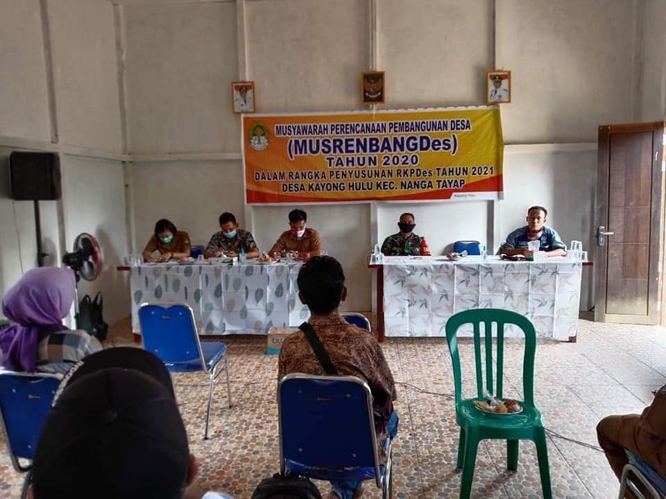Ketapang,- Bintara Pembina Desa (Babinsa) Koramil 1203-01/ Nanga Tayap Serda Hutagulung menghadiri kegiatan Musyawarah Rencana Pembangunan (Musrenbang) di Desa Kayung Hulu Kecamatan Nanga Tayap Kabupaten Ketapang, Kamis (15/10/2020).