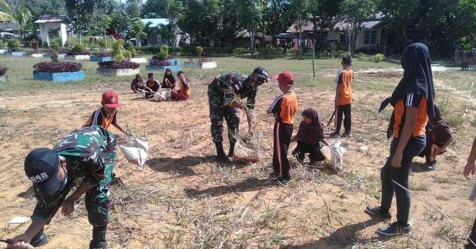 Bengkayang – 17/10/2020 Satgas Pamtas Yonif 642/Kps Pos Sentabeng, dibawah pimpinan Serda Dedik Krisdianto berserta 3 Orang Anggota melaksanakan giat Karya Bhakti bersama anak-anak Sekolah SDN 15 Sentabeng di Dsn. Kindau, Ds. Sentabeng, Kec. Jagoi Babang, Kab. Bengkayang.