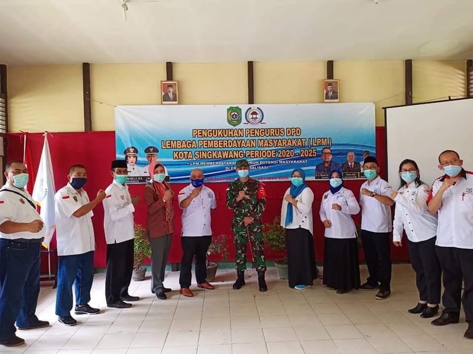 Dandim 1202/Skw hadiri undangan pengukuhan pengurus DPD lembaga pemberdayaan masyarakat (LPM) Kota Singkawang periode 2020-2025 bertempat di SDN 29 Jln. P. Belitung Kel. Pasiran Kec. Singkawang Barat.