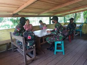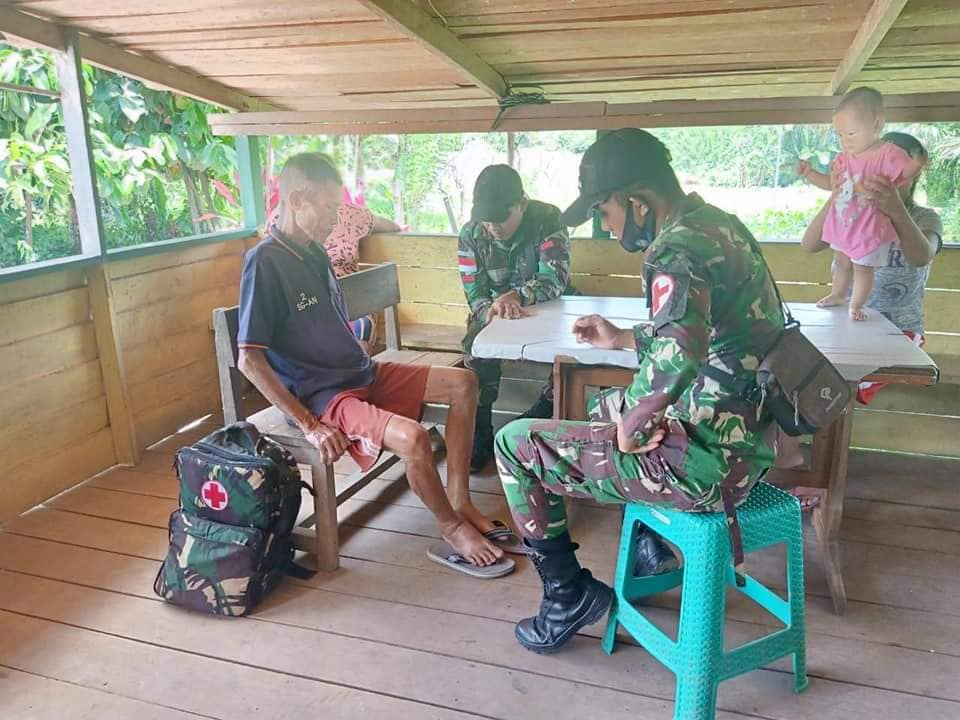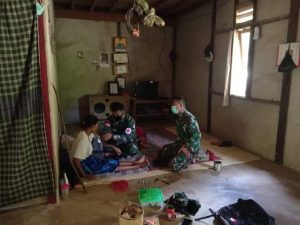 Bengkayang – 21/10/2020 Pratu Maulana Ismail dan Pratu Surya (Tamtama Kesehatan) beserta 2 orang Anggota Satgas Yonif 642/Kps Pos Gunung Anggas melaksanakan kegiatan Anjang sana ke Masyarakat sekaligus Mengecek Kondisi Kesehatan salah satu Masyarakat Di Dsn. Lundung, Ds.Siding, Kec. Siding, Kab. Bengkayang.