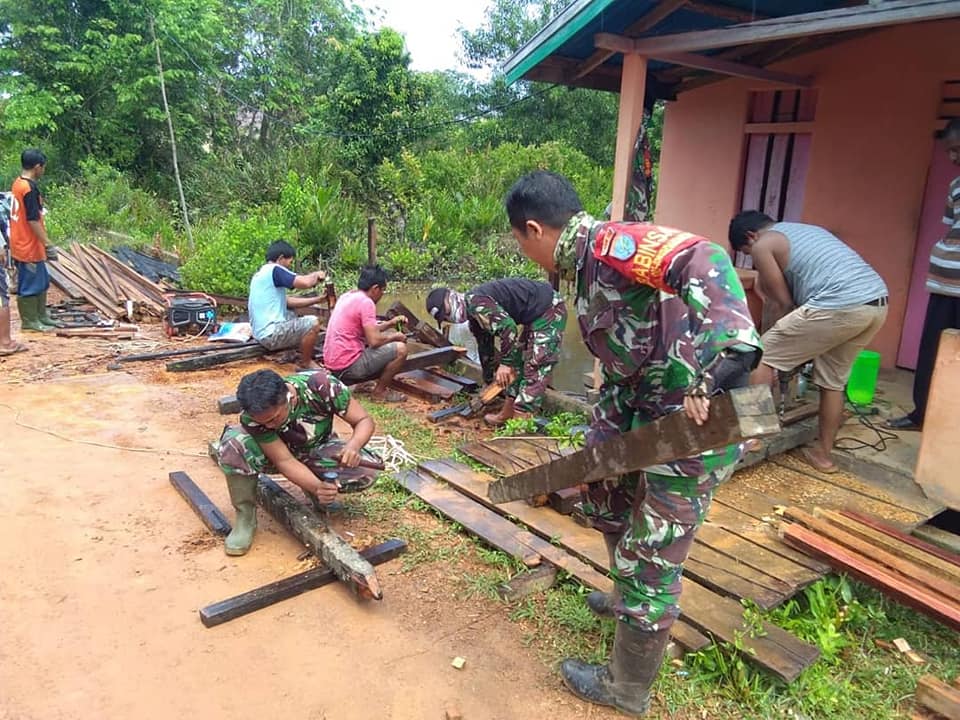Melalui program Desa bedah rumah, Koramil 1203-03/Kendawangan bersama pemerintah desa dan warga masyarakat bergotong-royong dalam pelaksanaan pembangunannya.