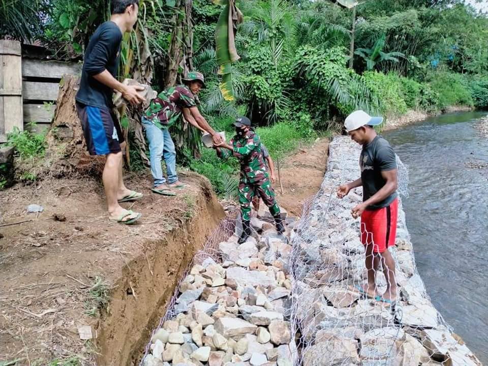 Sanggau, Kalbar – Satgas Pamtas RI- Malaysia Yonif 642/Kps melaksanakan kegiatan pemasangan dinding tanggul penahan longsor di aliran sungai Dusun Bantan di Dsn. Bantan, Ds. Bungkang, Kec. Sekayam, Kab. Sanggau.