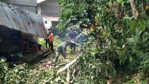 Mendengar informasi pohon tumbang menimpa rumah warga Batuud Koramil 01/Kapuas Serka Ardi bersama BNPB dan warga setempat bergotong royong membersihkan pohon yang menimpa rumah,Kejadian tersebut menyebabkan kondisi rumah rusak ringan pada seng belakang dikarenakan tertimpa dahan pohon yang tumbang dan tidak ada korban jiwa.
