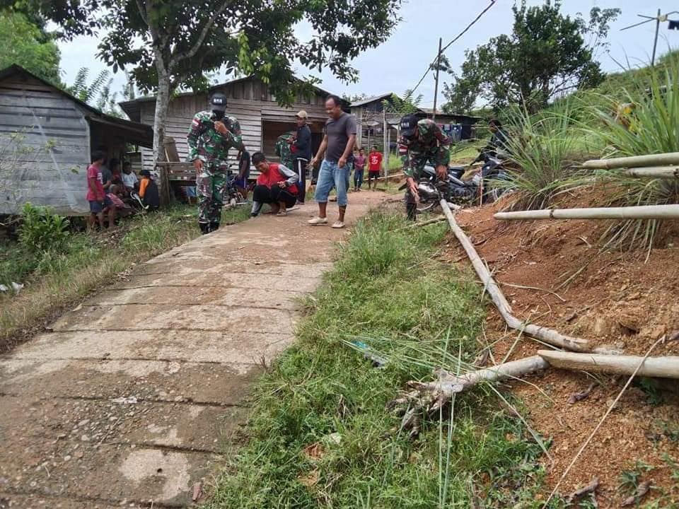 Kegiatan tersebut dilaksanakan pada pagi hari oleh 5 orang personel Satgas Pos Palapasang yang dipimpin Wadanpos Serda Supriadi bersama masyarakat sekitar. Semua bahu membahu membersihkan jalan agar lingkungan tetap bersih dan sehat.