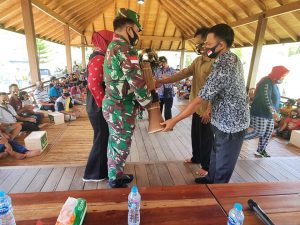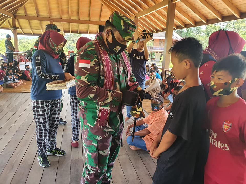 Dalam kunjungan di desa Balubu Ng. Bayan kec. Ket. Tengah Danrem 121/Abw juga membagikan sembako untuk masyarakat serta juga pembagian masker.