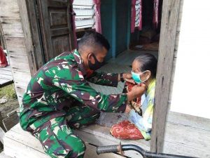 “Di samping membagikan masker, Babinsa juga menghimbau kepada masyarakat untuk selalu patuh terhadap protokol kesehatan dan mengikuti imbauan pemerintah.